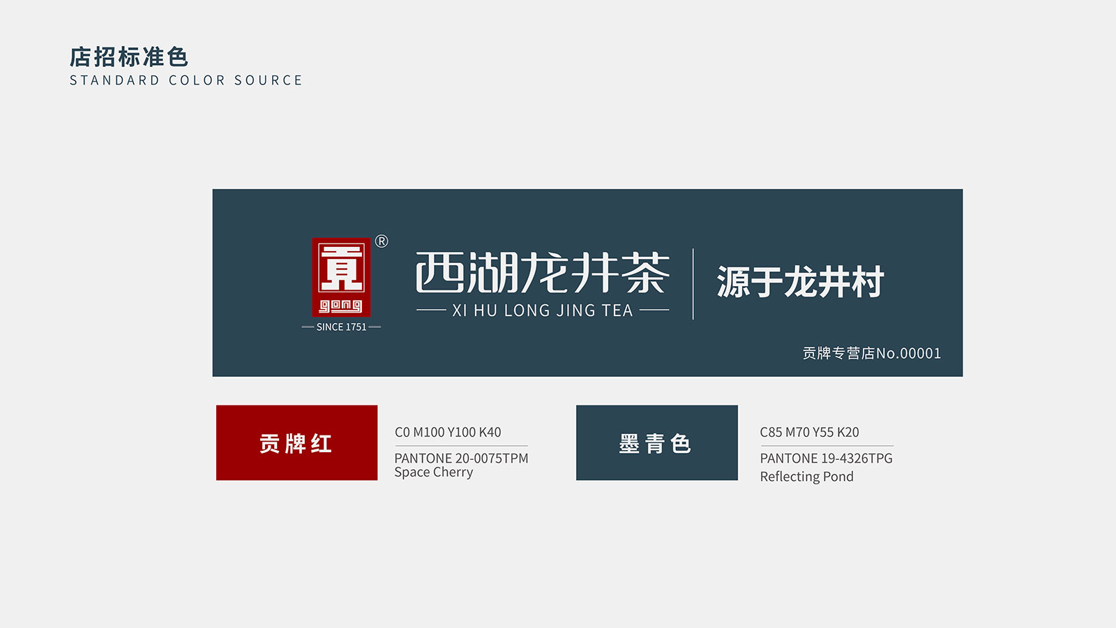 貢牌色彩由墨青色、貢牌紅及白色共同組成,整體背景色取墨青色,logo背景部分沿用貢牌專屬紅色,字體統一用白色。色彩搭配以強化品牌、突出重點、視覺愉悅、加深記憶為原則,三色選配方面深度考慮品牌文化基因以及目標受眾心理,能在視覺上形成統一,突出強化關鍵信息,同時給受眾留下深刻印象。