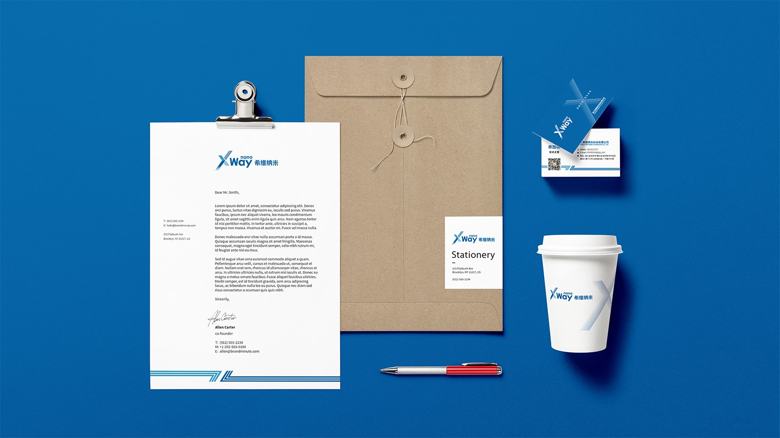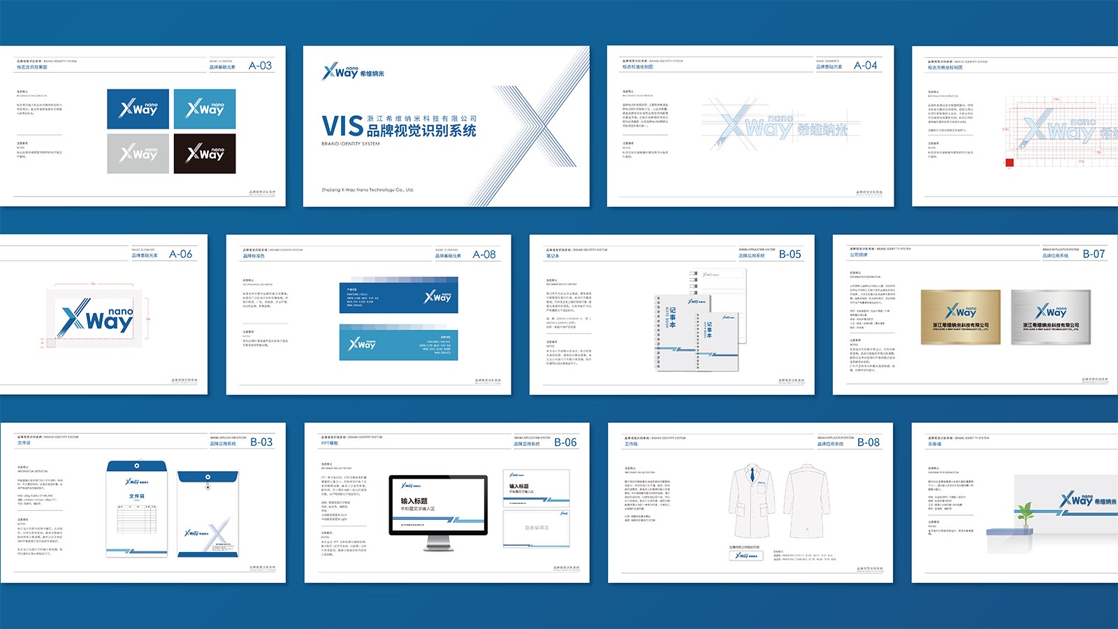 石特基于廣泛的市場調(diào)查和分析對(duì)希維納米科技進(jìn)行了品牌定位分析。石特緊跟設(shè)計(jì)潮流趨勢(shì),大膽創(chuàng)新,對(duì)希維納米科技的logo進(jìn)行了創(chuàng)意設(shè)計(jì),依據(jù)企業(yè)的行業(yè)屬性及調(diào)性,采用中英文結(jié)合的形式將“X”“Way”“Nano”巧妙結(jié)合,利用公司名稱“希維”的諧音和“X”所代表的“無限可能”以及“Nano”所代表的“納米科技”這些含義,給品牌賦予“不走尋常路,勇于探索未知的科學(xué)精神”的內(nèi)涵,從而賦予企業(yè)的品牌形象與品牌價(jià)值;在配色上,選用代表科技感與未來感的藍(lán)色作為主色調(diào)進(jìn)行設(shè)計(jì),符合企業(yè)科技、創(chuàng)新的品牌屬性;logo整體簡潔流暢,不僅在視覺上呈現(xiàn)設(shè)計(jì)特有的美感,而且給予企業(yè)鮮明的生命力與活力;同時(shí)對(duì)公司VI進(jìn)行系統(tǒng)設(shè)計(jì)與規(guī)劃,創(chuàng)意設(shè)計(jì)了系列宣傳物料,明確傳播路徑,注重和諧統(tǒng)一,凸顯了企業(yè)的整體形象且與公司理念高度吻合。該項(xiàng)目的成功應(yīng)用,得到公司的高度認(rèn)
