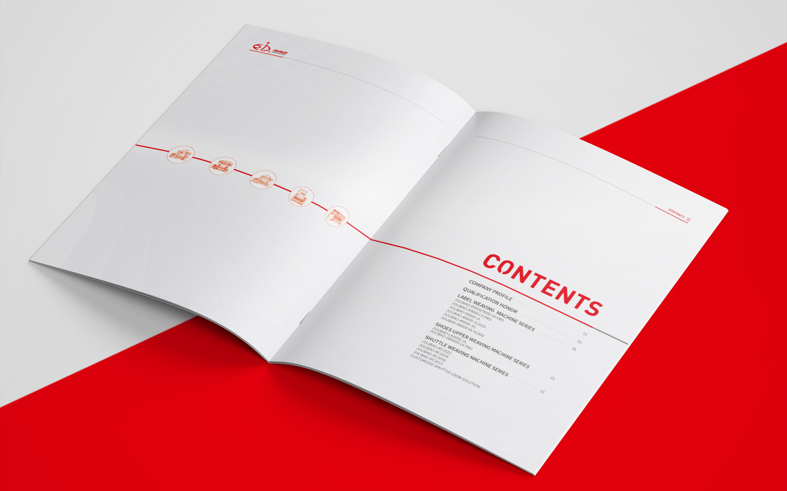 1、從企業品牌形象出發,封面品牌名巨力寶以品牌色填充,留白眾多,目錄設計也是如此,加配小圖標,整體設計簡約時尚