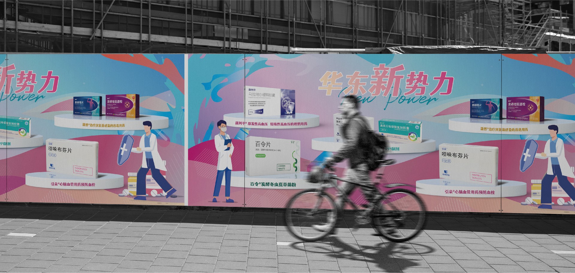 本次醫(yī)藥產(chǎn)品海報、展板及戶外廣告畫面設(shè)計以“健康、安全、信任”為核心,通過視覺元素的組合,將產(chǎn)品的特點、品牌形象以及宣傳語有機融合,呈現(xiàn)出符合醫(yī)療行業(yè)特點的設(shè)計風格。主色調(diào)采用紅色和藍色,象征著清潔、衛(wèi)生和信賴。白色代表醫(yī)藥產(chǎn)品的純潔與安全,藍色則傳達出專業(yè)、可靠的醫(yī)療形象。通過這兩種顏色的組合,使整個設(shè)計在視覺上更加舒適、自然。