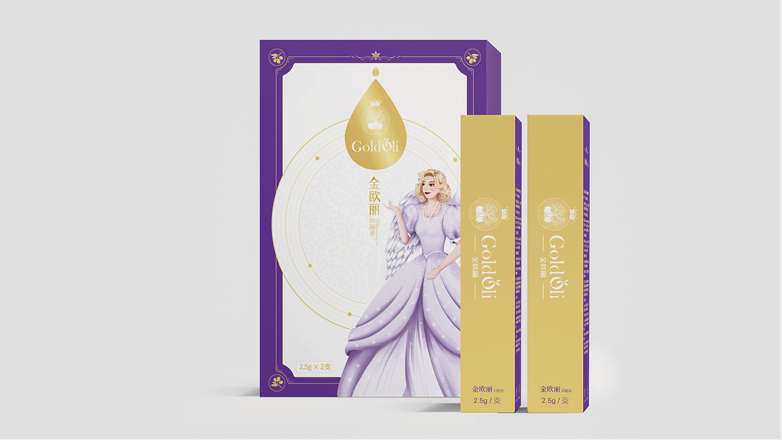 石特在創意思考之前,針對品牌進行全維調研與洞察,對現有包裝進行全面診斷分析,提煉出產品核心主張——每個女人都是自己的公主,并以此為發散點,以公主的IP人物形象進行畫面創作,同時包裝畫面突出風格鮮明的西班牙王室元素,加強產源地背書及產品核心賣點凝練。包裝運用女性紫與尊貴金的色彩進行渲染,時尚醒目,記憶點十足。細細品味,包裝處處體現尊貴與呵護,整體來看,包裝解決了金歐麗品牌與受眾利益訴求之間的溝通不順的問題,以市場化、差異化的表現手法將品牌展現的淋漓盡致,獲得客戶一致好評!